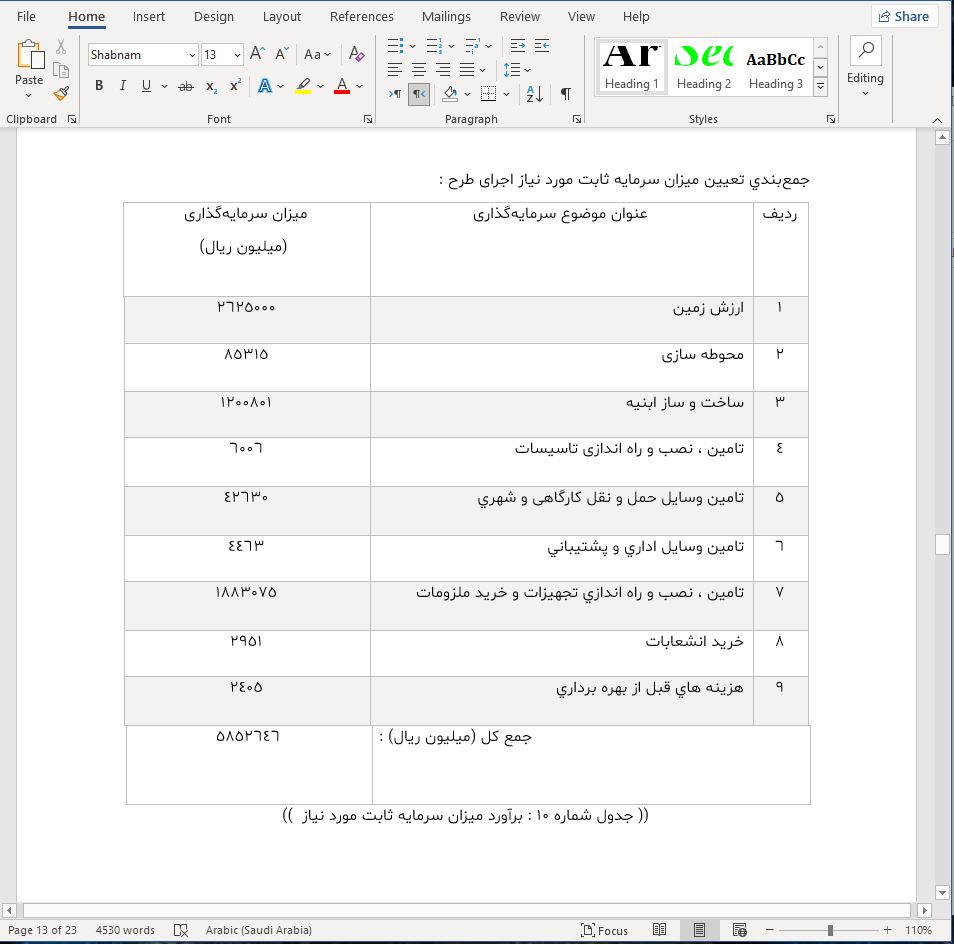 | اصول نگارش : | براساس استانداردهای طرح توجیهی کشور و مناسب برای اخذ تسهیلات از بانک ها |